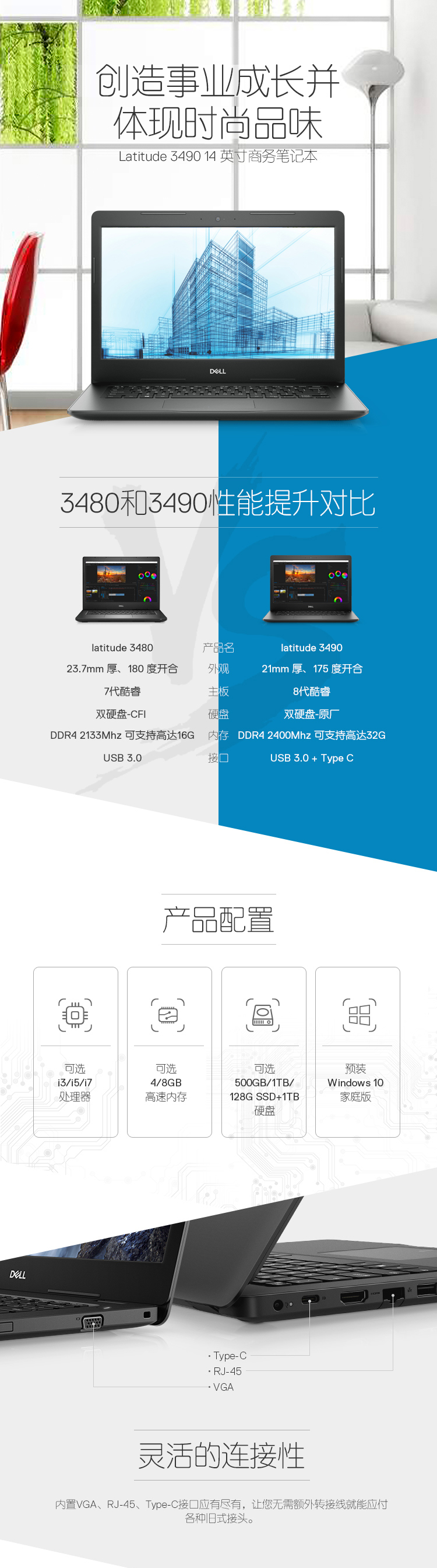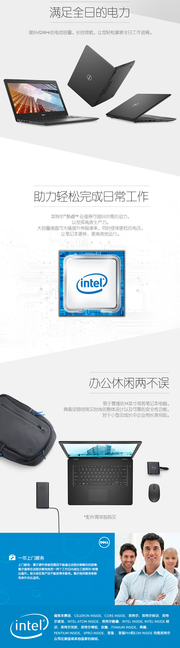 戴尔 3490 14英寸商用笔记本(I7-8550U/8G/1T+128G/2G独显/三年上门/三年硬盘保留)(单位:台)