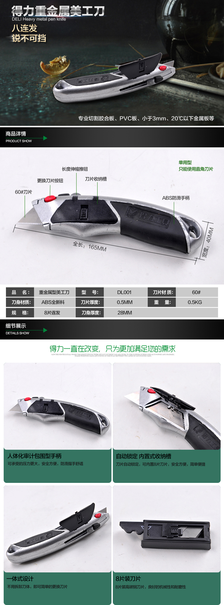 得力工具 DL001 得力工具DL001美工刀重金属(单位:只)