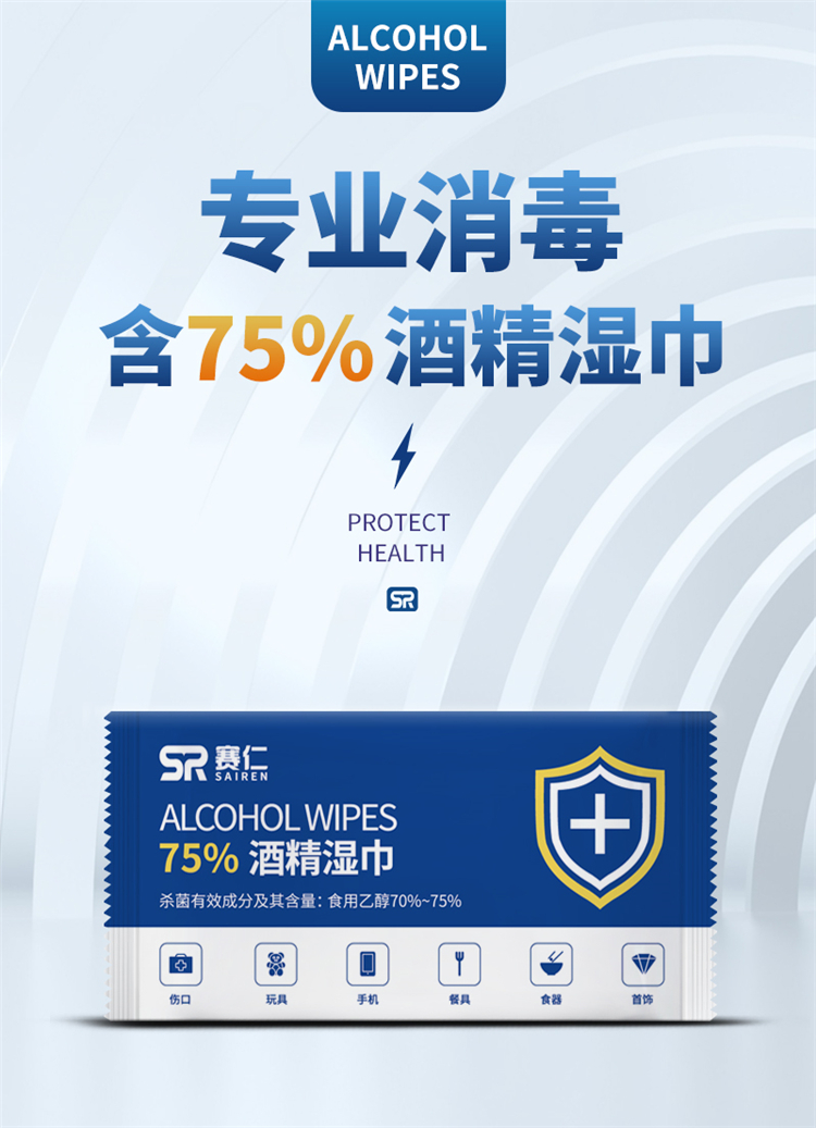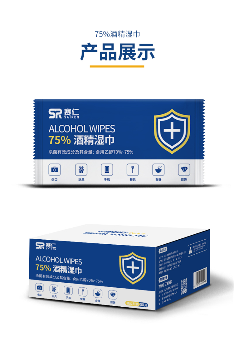 赛仁 50片装/盒 酒精湿巾 蓝色 (单位:盒)