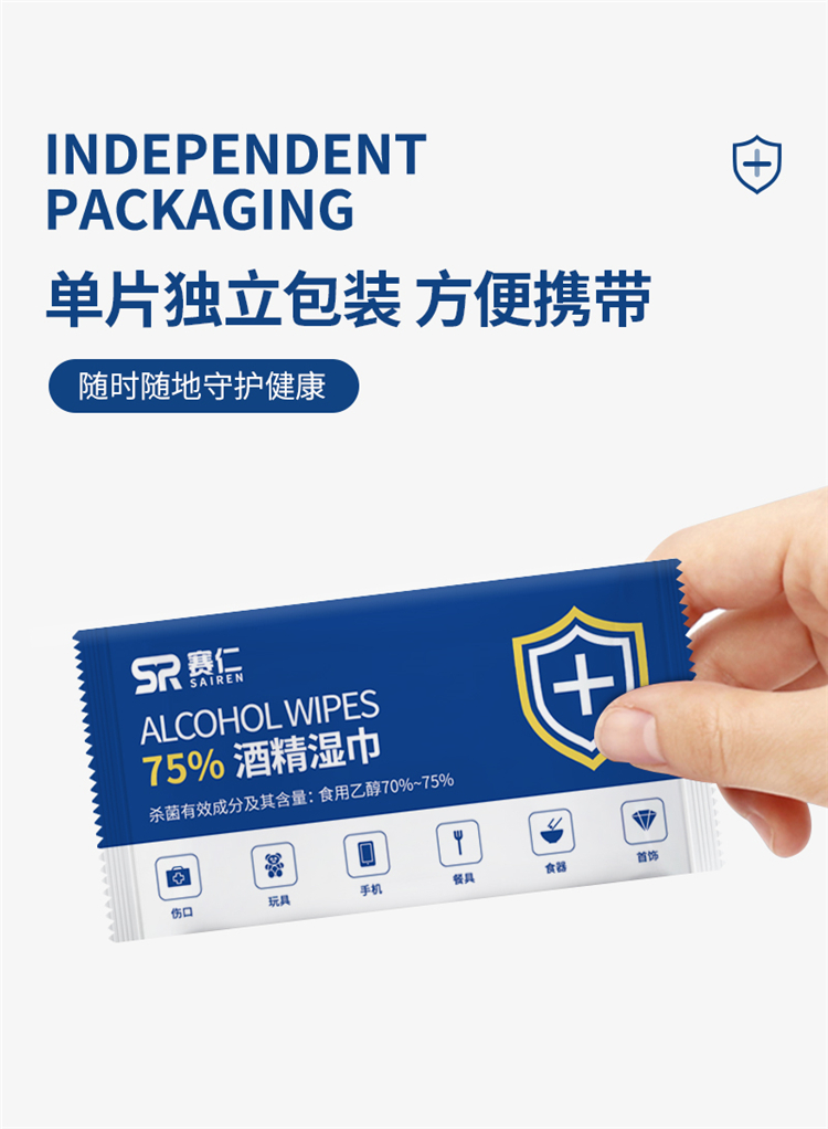 赛仁 50片装/盒 酒精湿巾 蓝色 (...