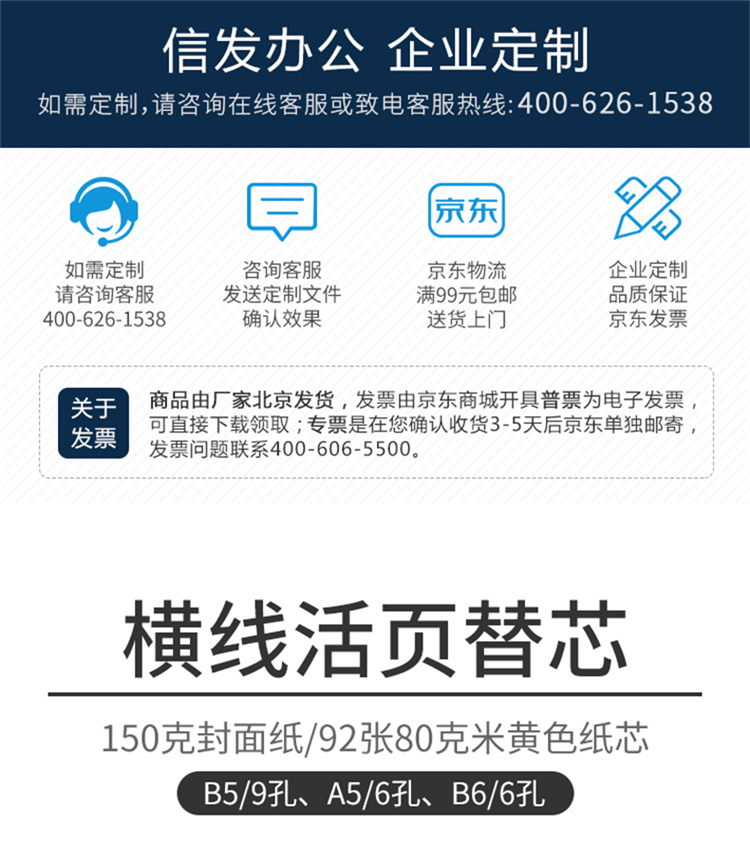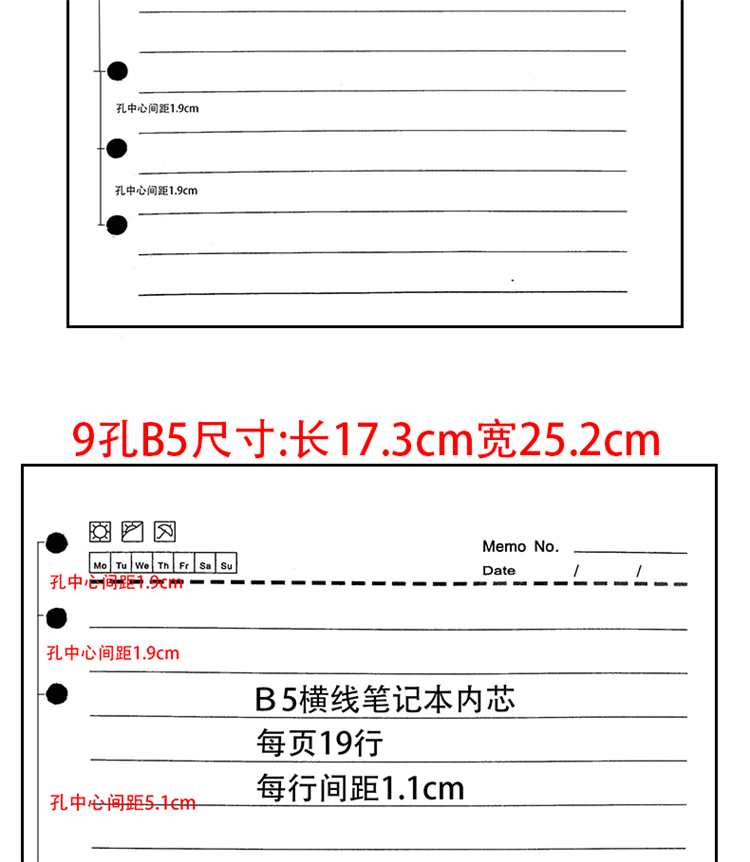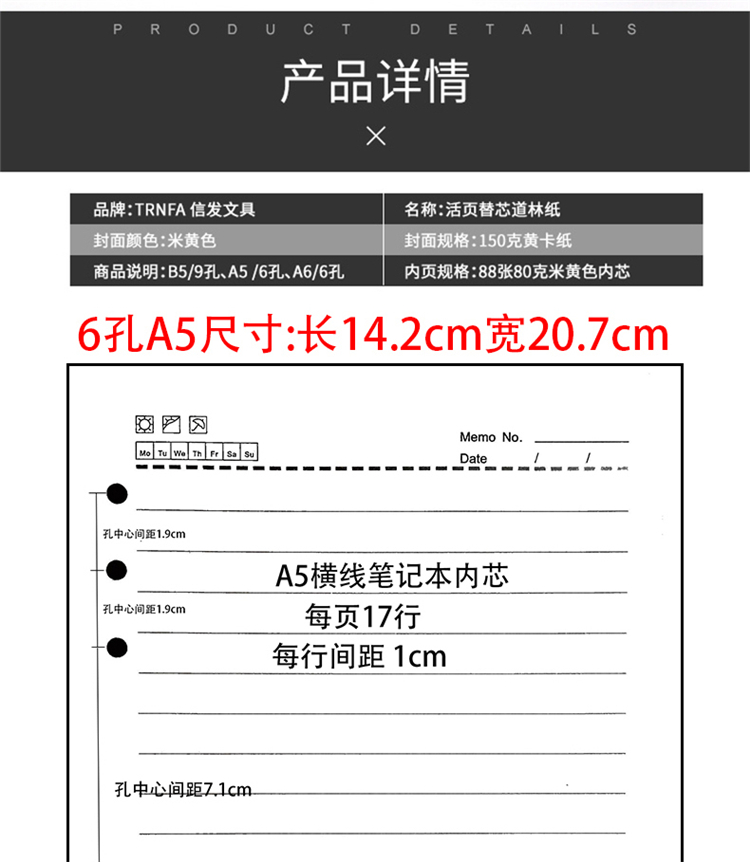 信发(TRNFA) 9孔B5横线 记事本纸芯80克 5本起售 颜色:米黄色 (单位:本)