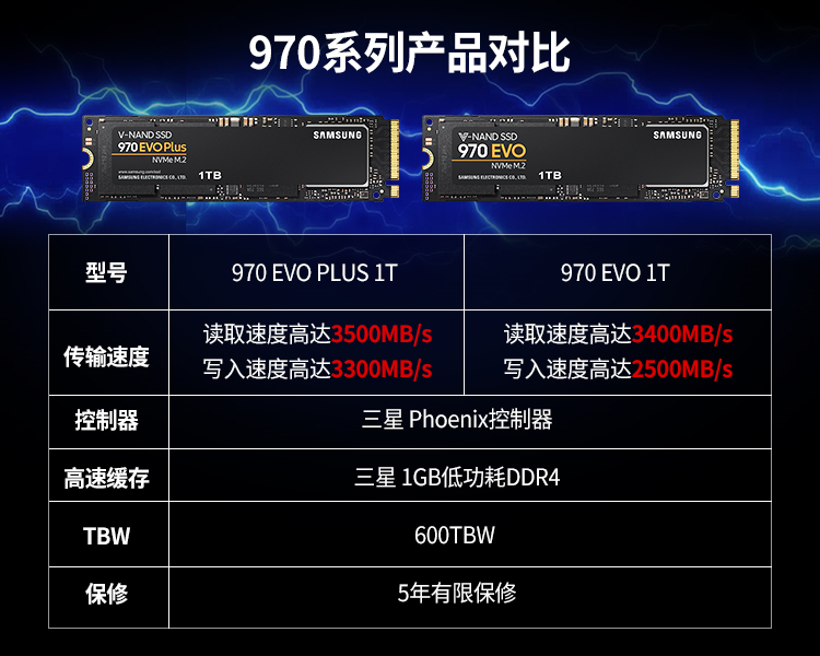 三星(SAMSUNG)MZ-V7S1T0B 1TB SSD固态硬盘 M.2接口(NVMe协议) 970 EVO Plus(单位:个)