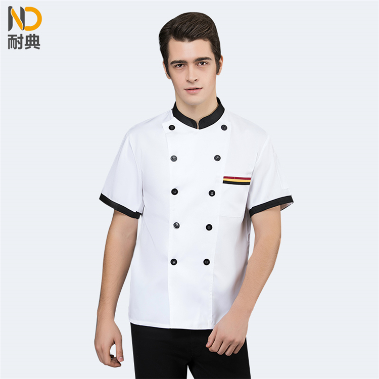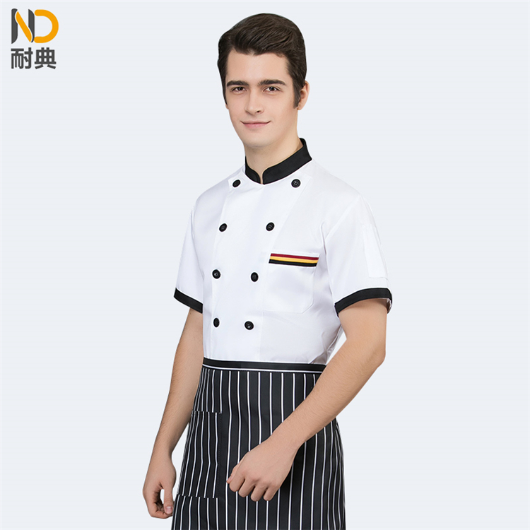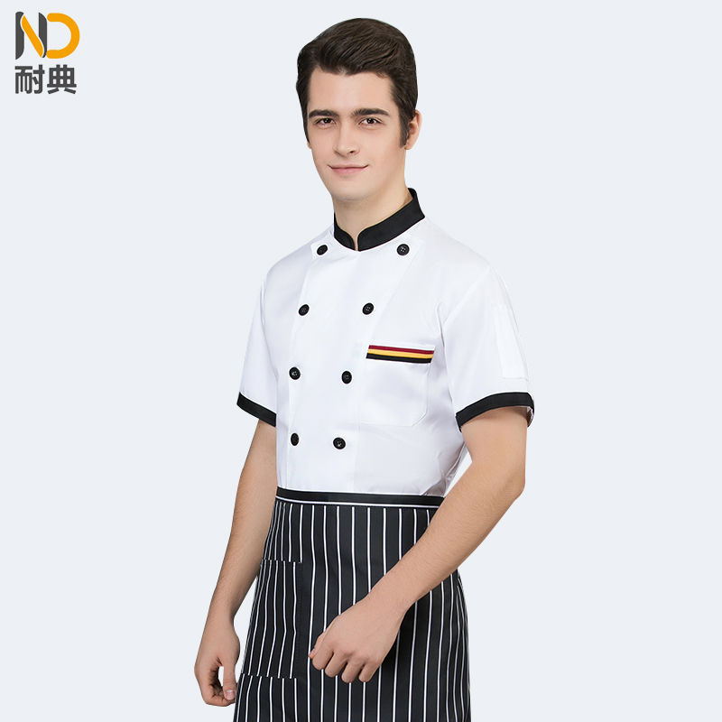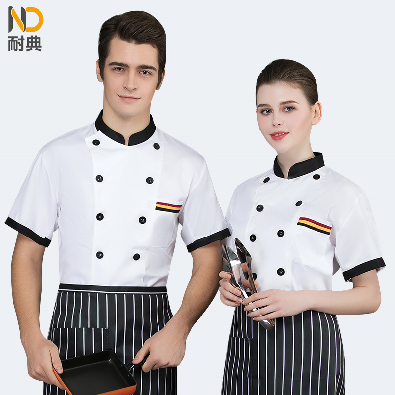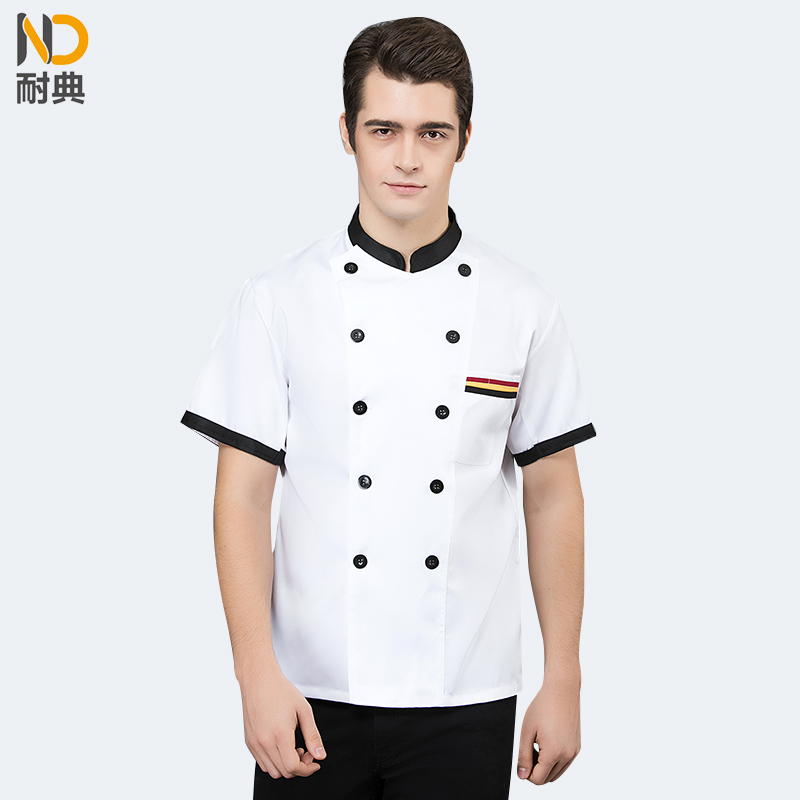 耐典 2XL 全工艺面料三杠兜口设计耐穿男女厨师服 蛋糕店酒店饭店料理服务员工作服 白色短袖(单位:件)