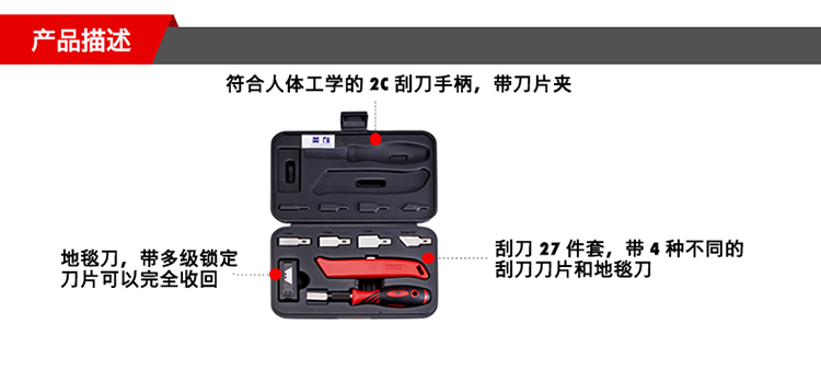 伍尔特 7156640 刮刀和铲刀组套-刮刀和刀片-27件套 银黑(单位:套)