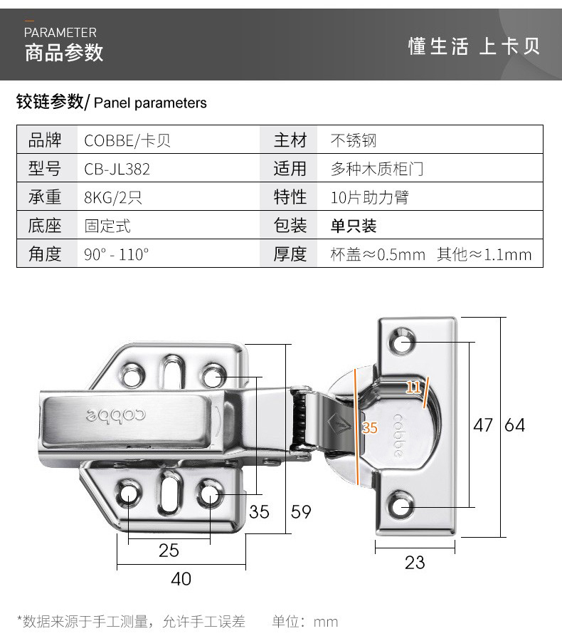 卡贝/cobbe 不锈钢液压缓冲铰链合...
