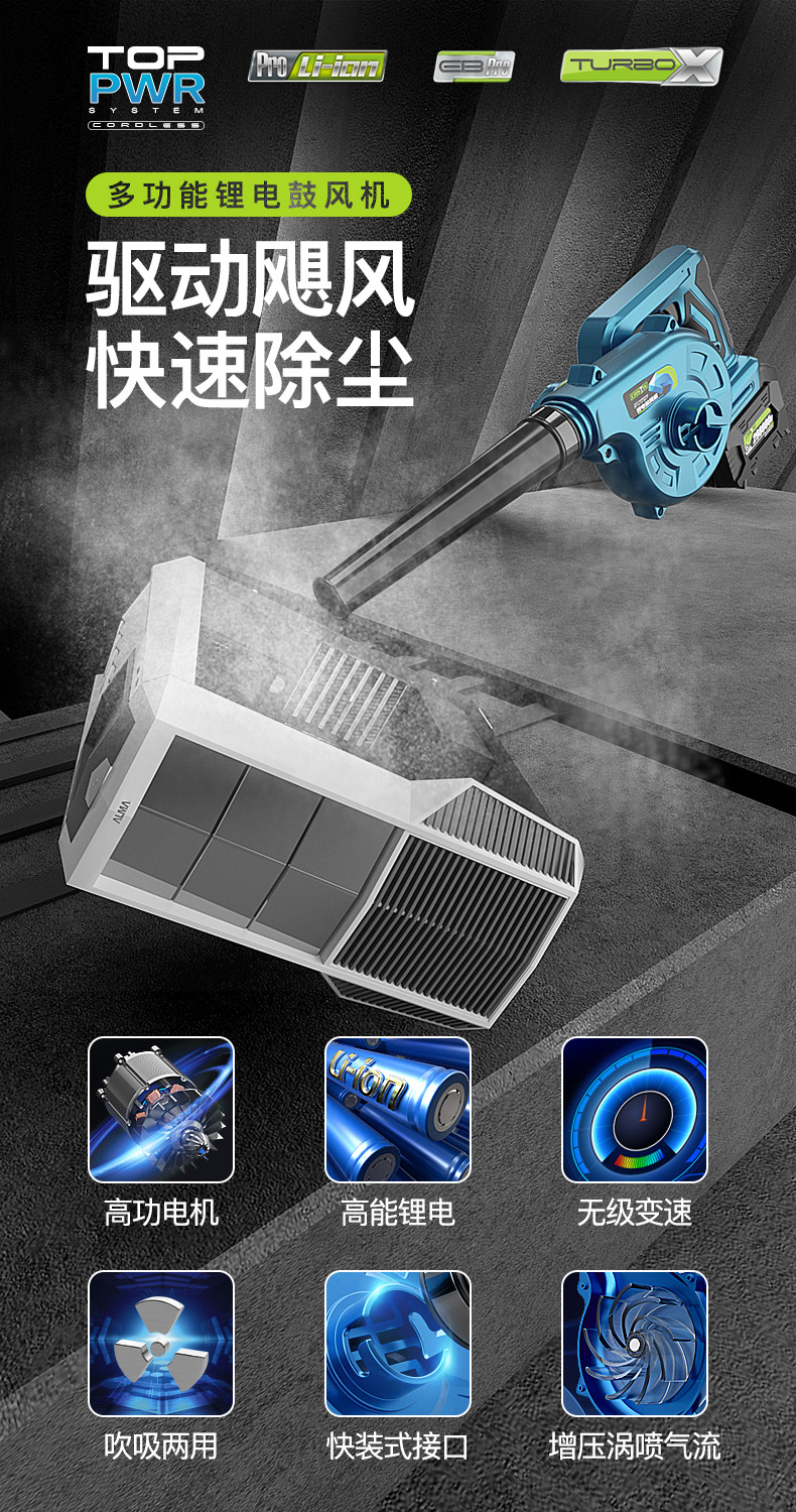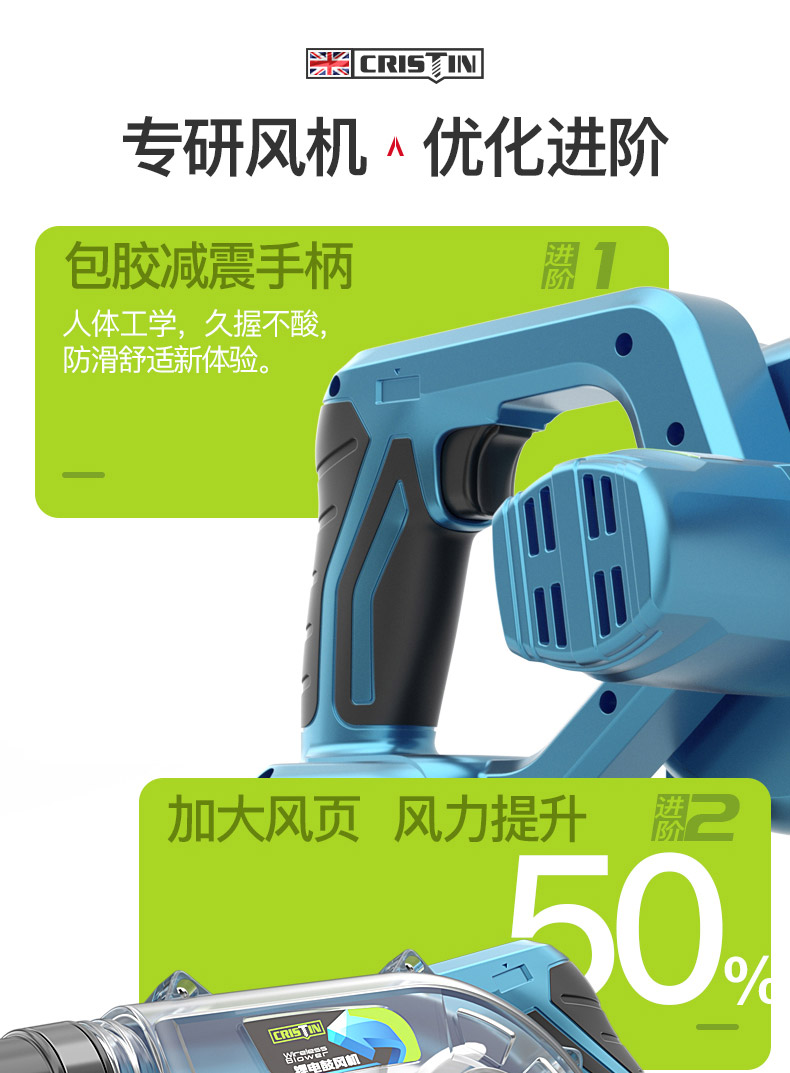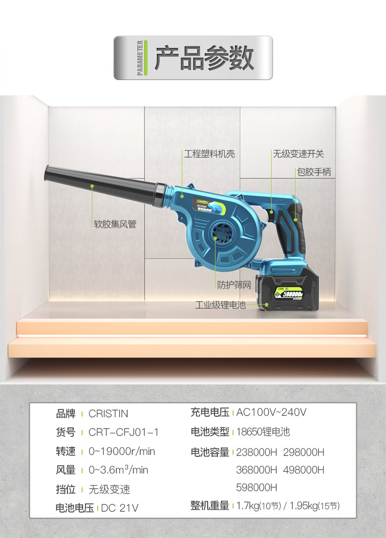 克里斯汀 368000H^202201120112 ^ 鼓风机锂电吹风机 CRT吹吸喷三用 2电1充
