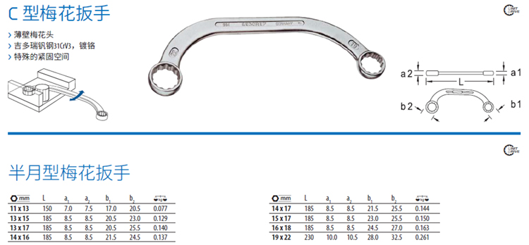 吉多瑞 7570051-11x13 半月型梅花扳手 (单位:个)