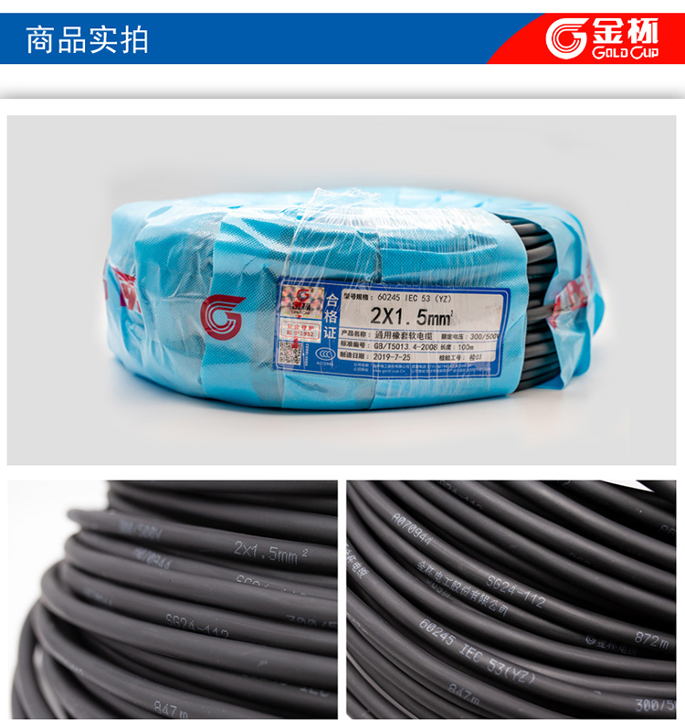 金杯 YZ 3*2.5 100m 通用橡套软电缆 黑色(单位:卷)