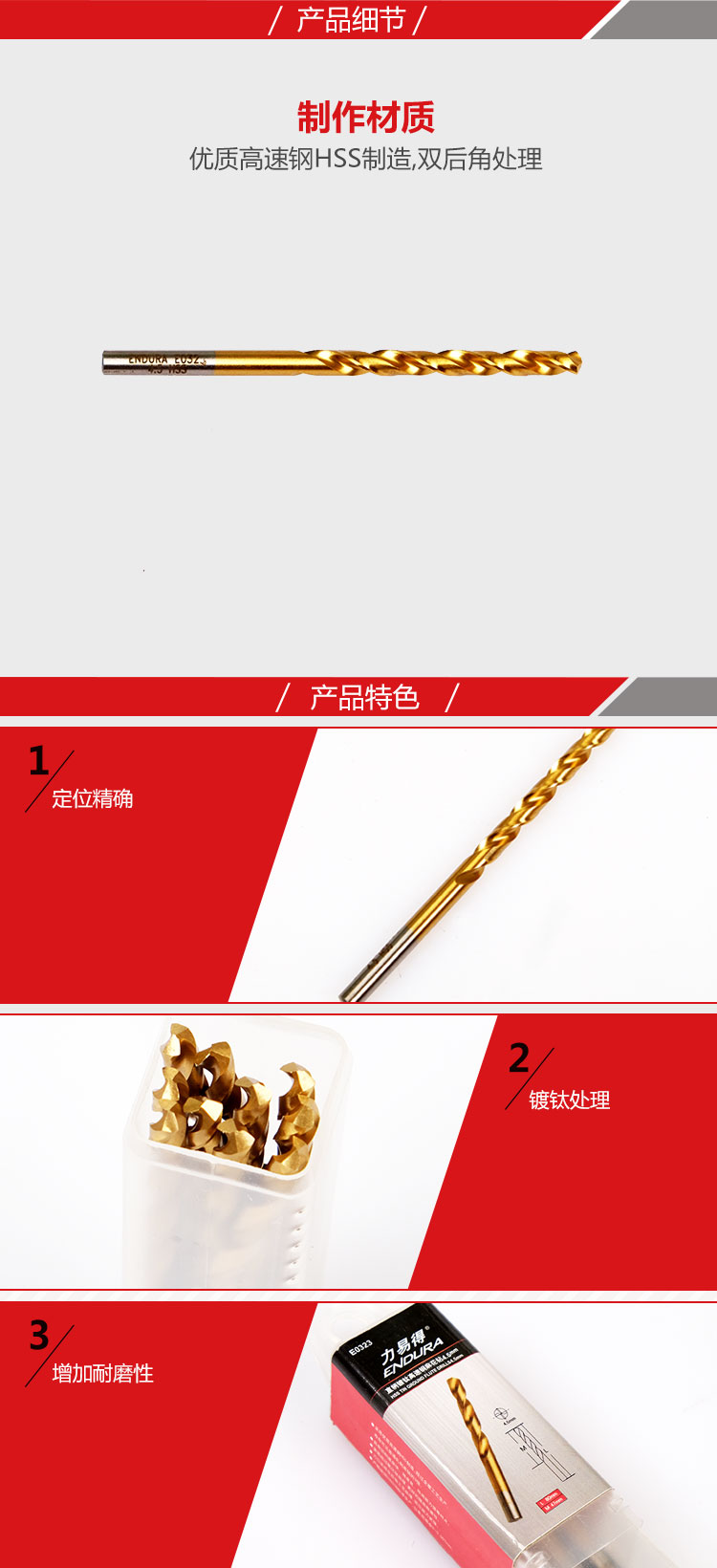 力易得 E0323 直柄镀钛高速钢麻花钻...
