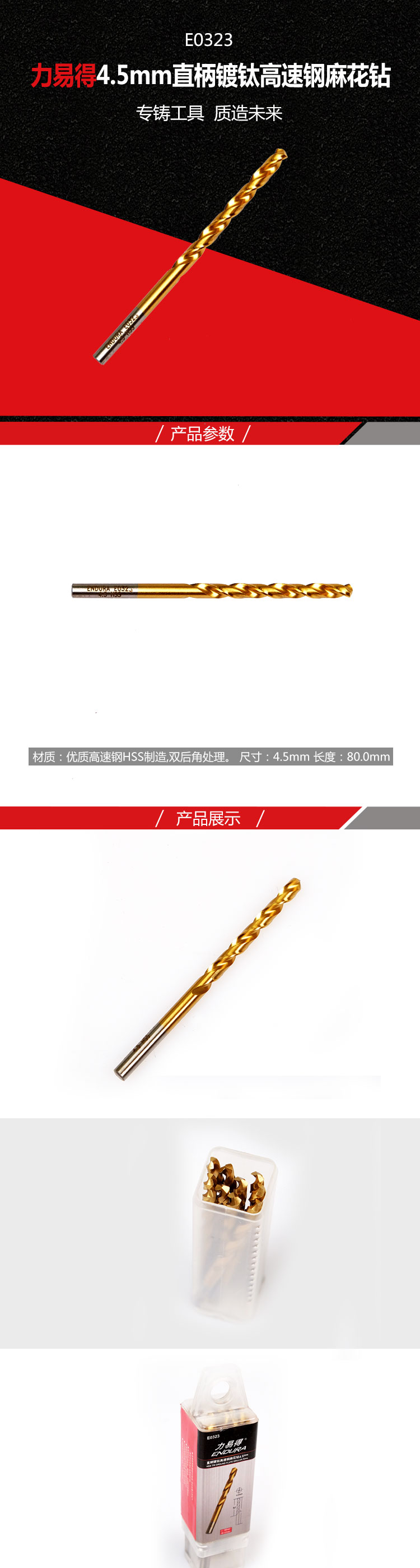 力易得 E0323 直柄镀钛高速钢麻花钻4.5mm (单位:个)