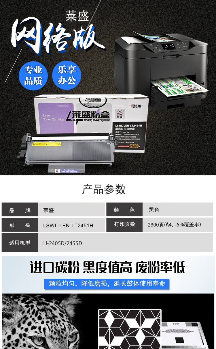 莱盛 LSWL-LEN-LT2451H 激光打印机粉盒 黑色 适用于LJ-2405D/2455D (单位:个)