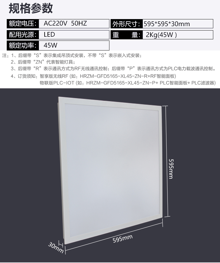 华荣 HRZM-GFD5165-XL45-ZN-P(145)(物联版) 45W IP65 220V 嵌入式LED灯具 1.00 台/套 (计价单位:套) 白色