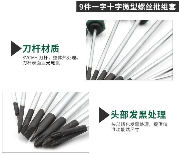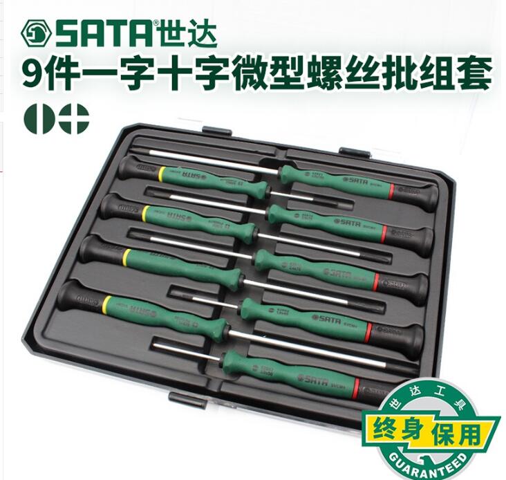 世达(SATA) S09316 9件一字、十字微型螺丝批组套 绿 (单位:台)