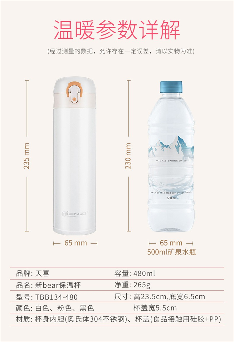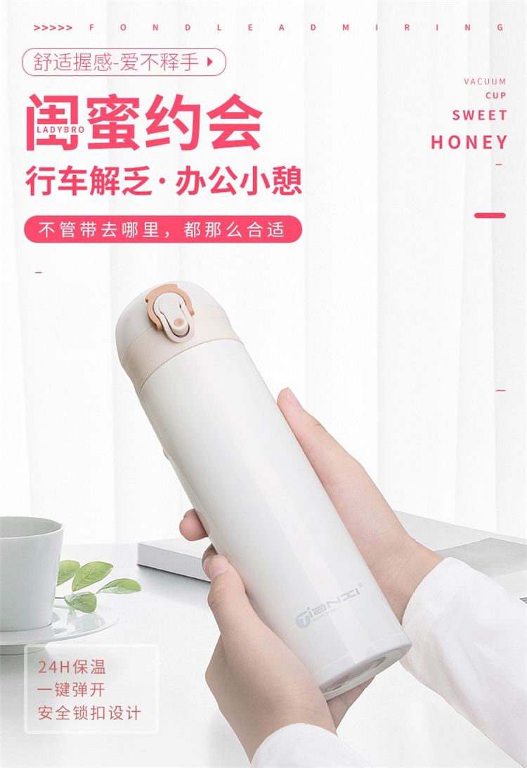 爱普登 304不锈钢弹跳盖男女士时尚户外便携水杯子 480ml(单位:个)
