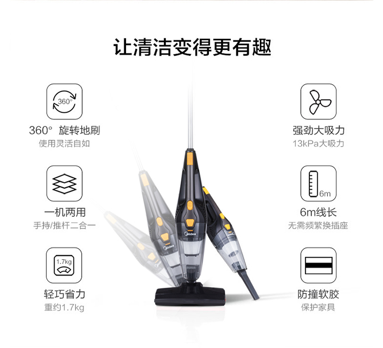 美的 M1-Y 家用手持推杆两用大吸力吸...