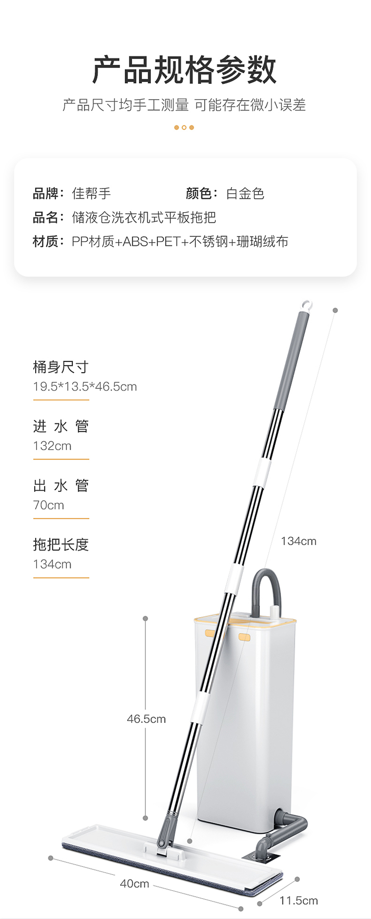 佳帮手 33-40cm 超大号刮刮乐网红免手洗平板拖把洗脱合一拖把桶 白色(单位:套)