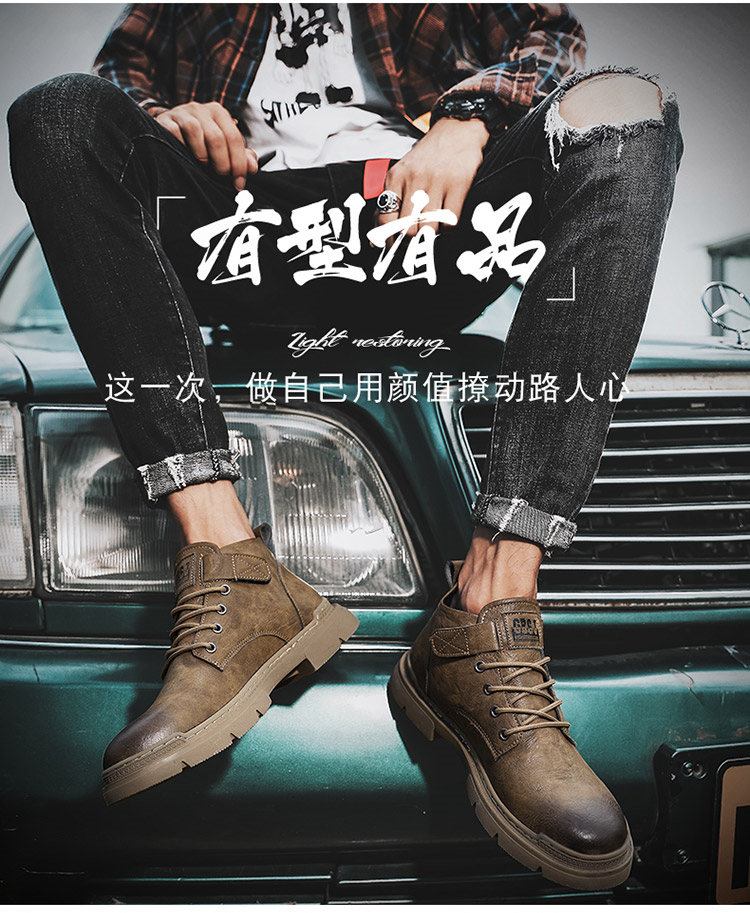 木林森(MULINSEN)男鞋新款马丁靴复古真皮短靴高帮鞋子男潮鞋 黑色 39(单位:件)
