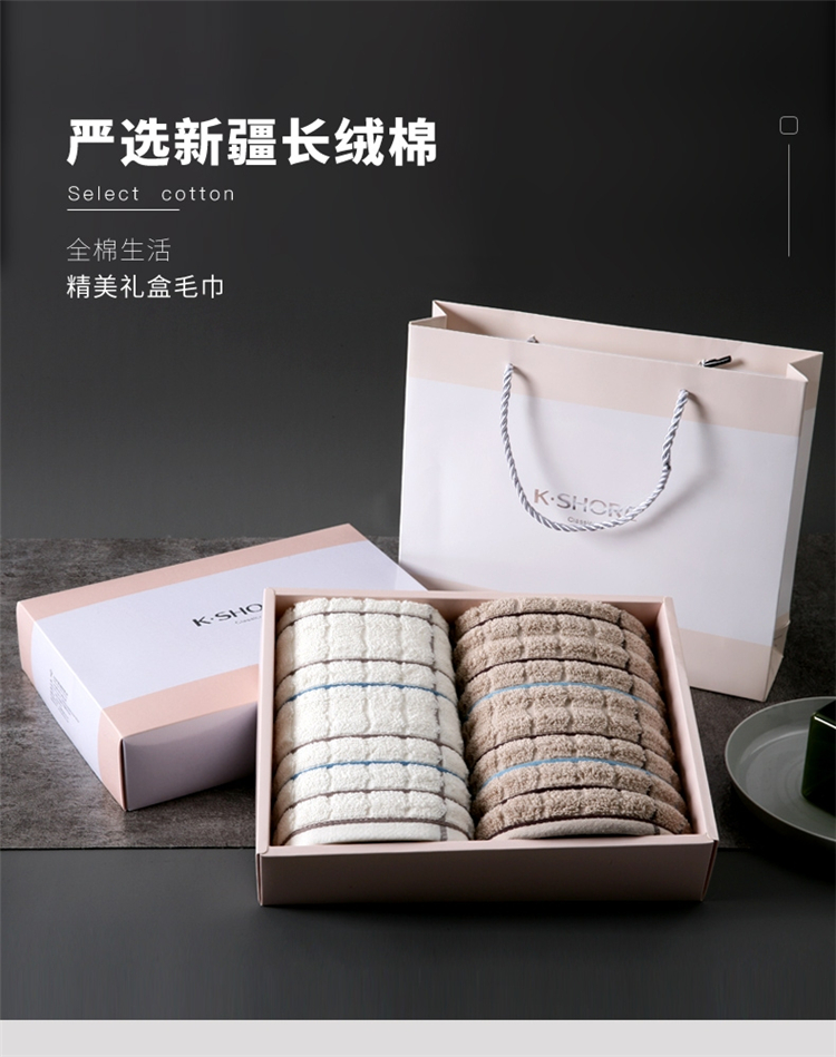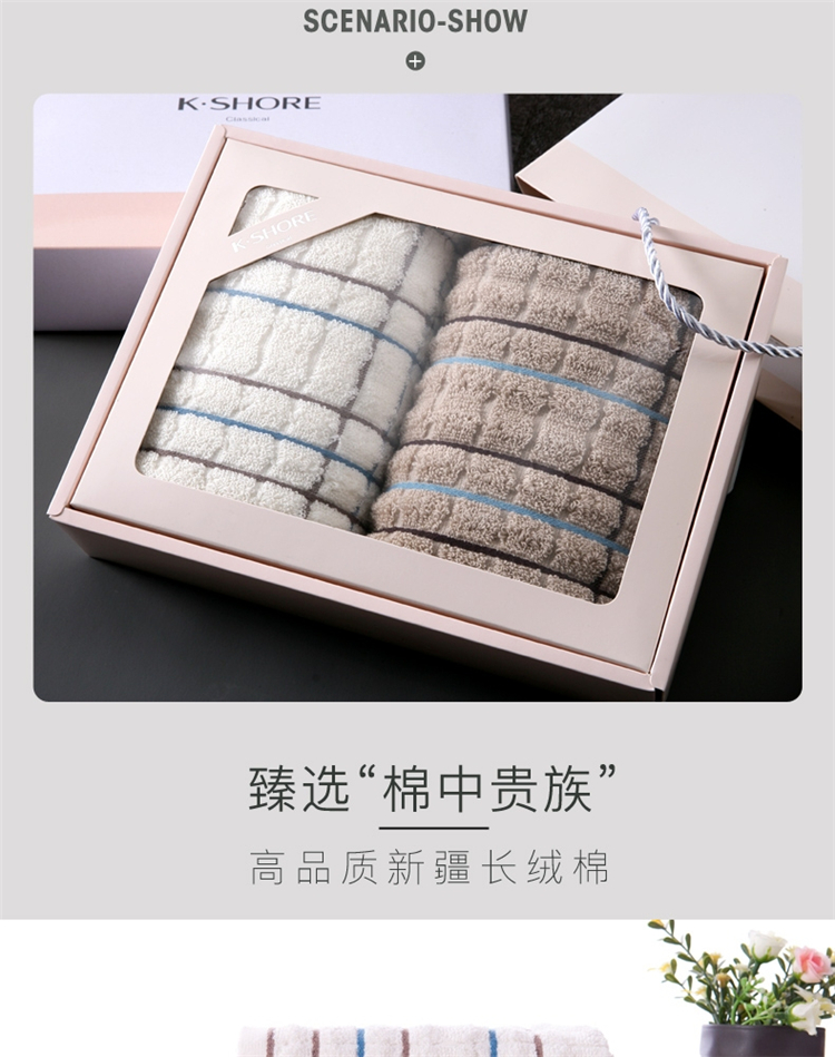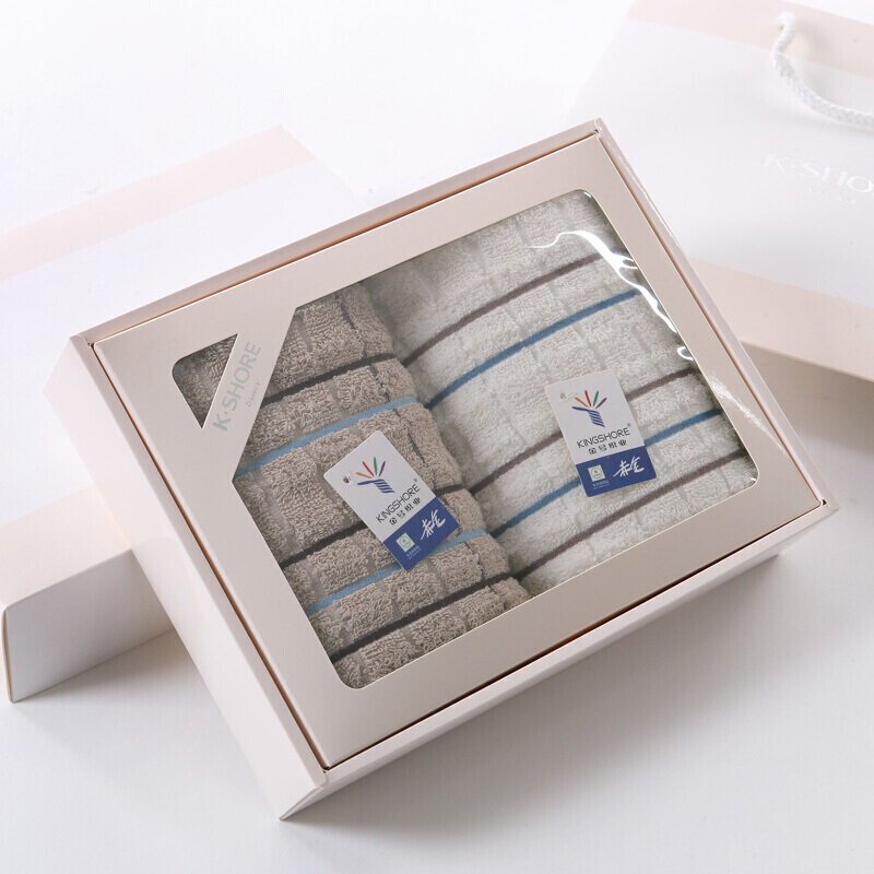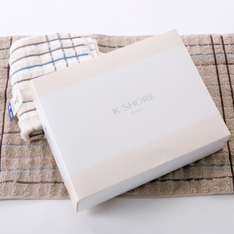 金号 70*34cm 毛巾家纺 纯棉条格毛巾团购礼盒 白棕毛巾各一条 84g/条